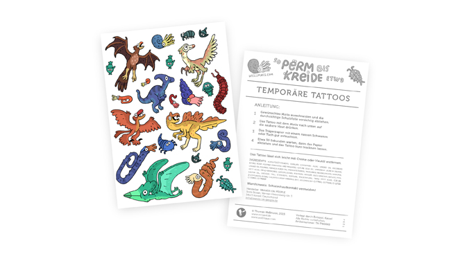 The tattoos last two to four days without fading, are skin friendly, easy to remove, and produced in Germany.